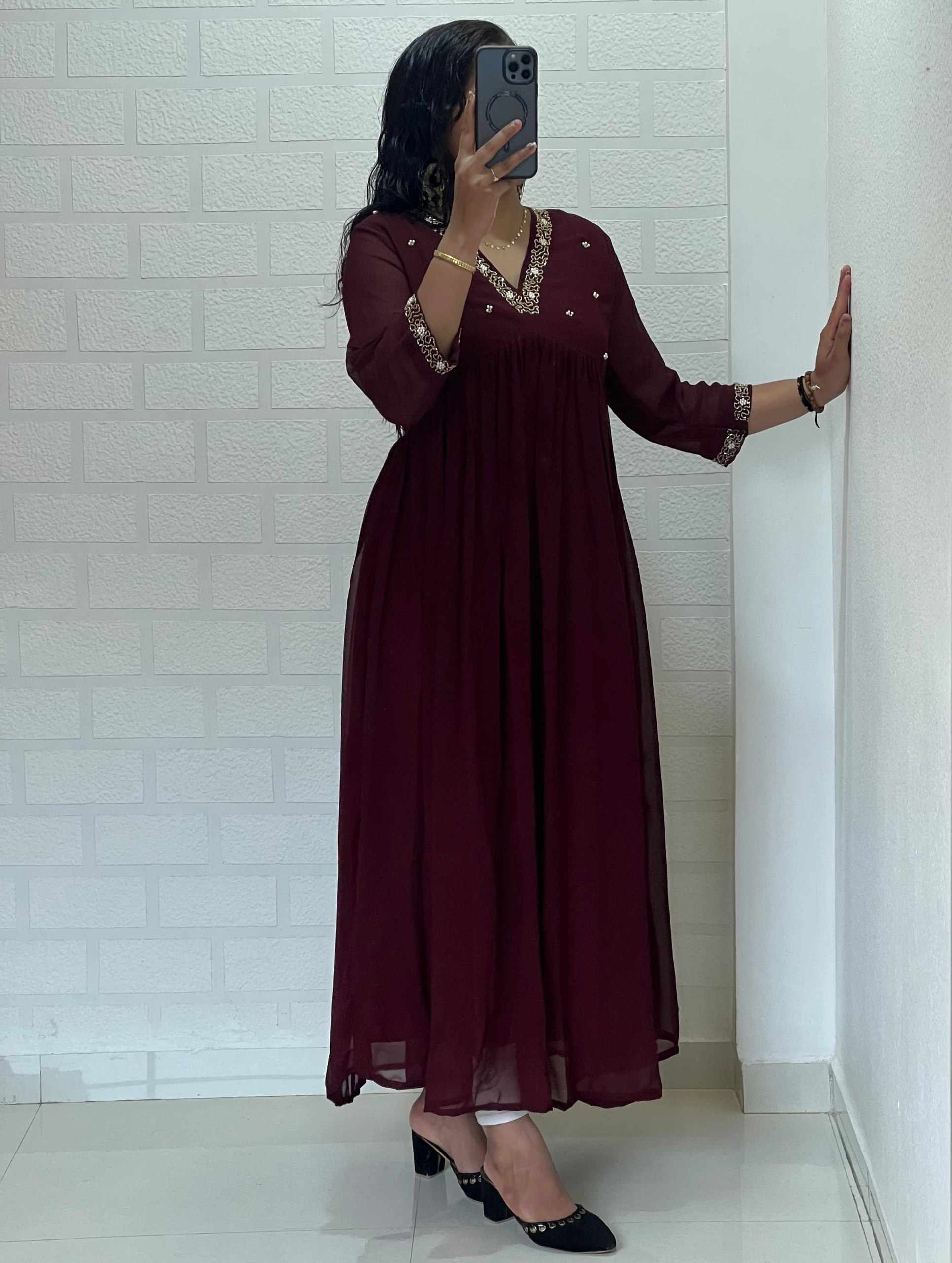 Reviews for WM10 MARRON BLOOMING GEORGETTE HANDWORK KURTI