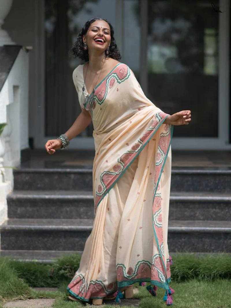 Saree Fabric: Premium Linen Cotton with beautiful digital print