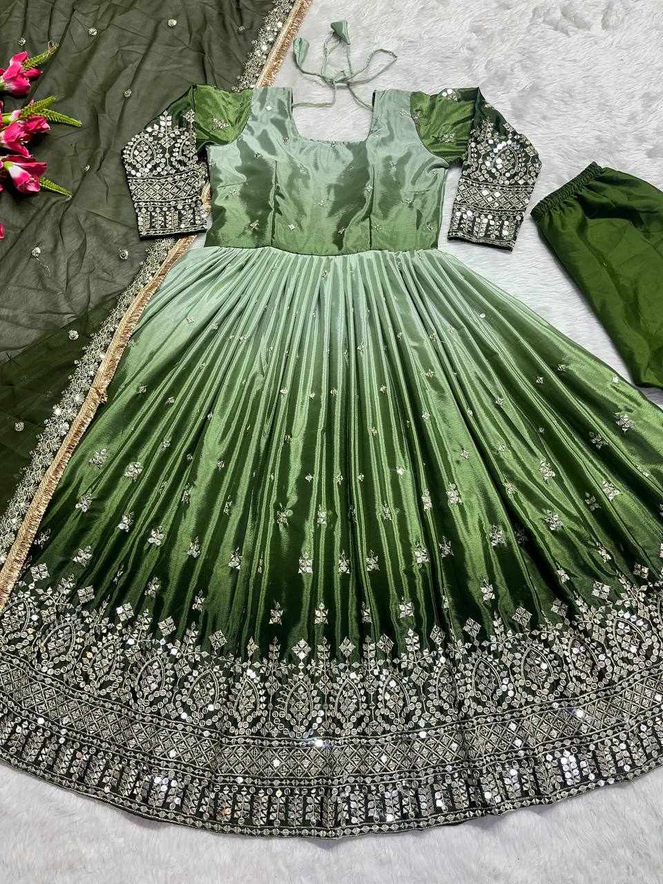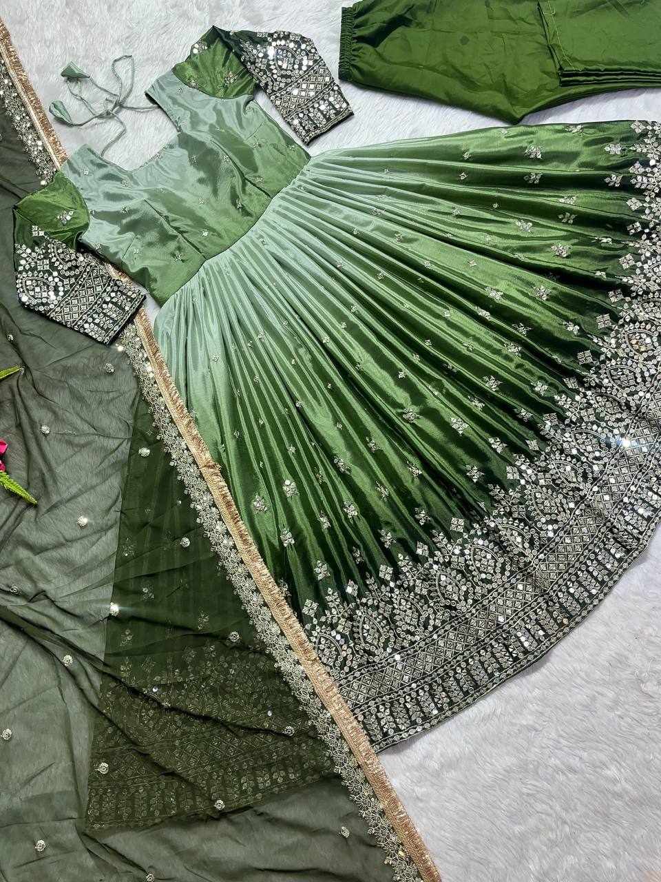 GOWN FABRIC: Heavy Chinon Silk with Padding and Embroidery Work with Full Sleeves