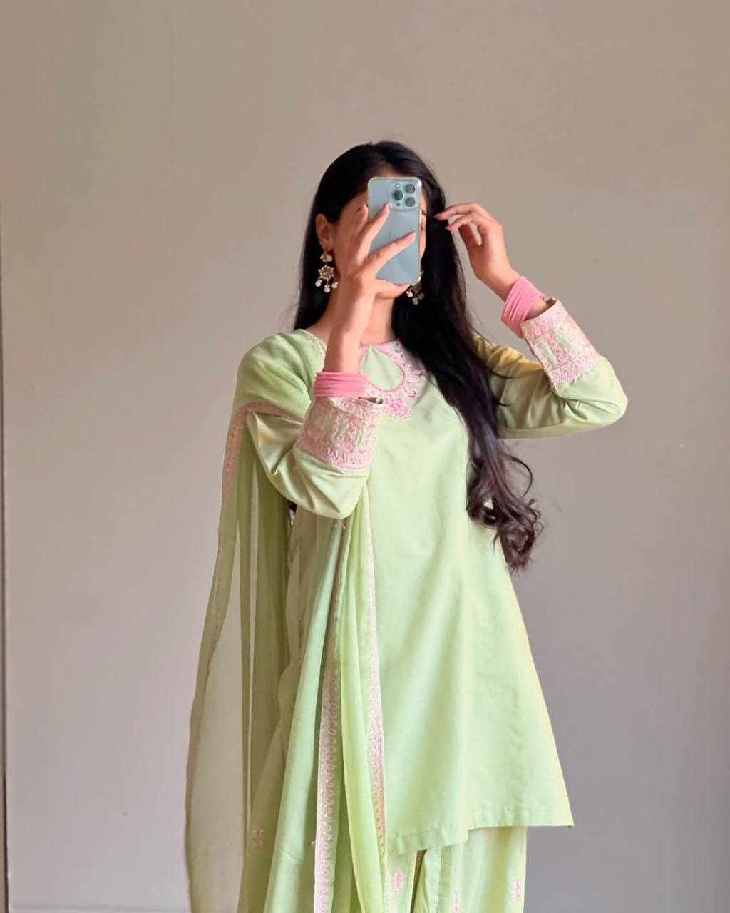 JKWH 998 Pure Fine Cotton Febric Embroidery Work A-line Kurti Set With Pocket