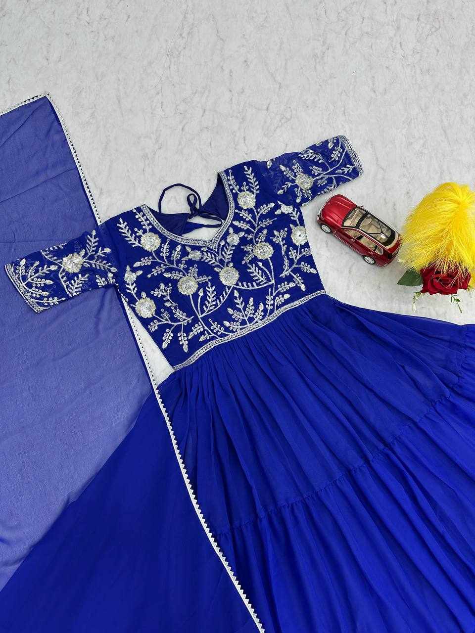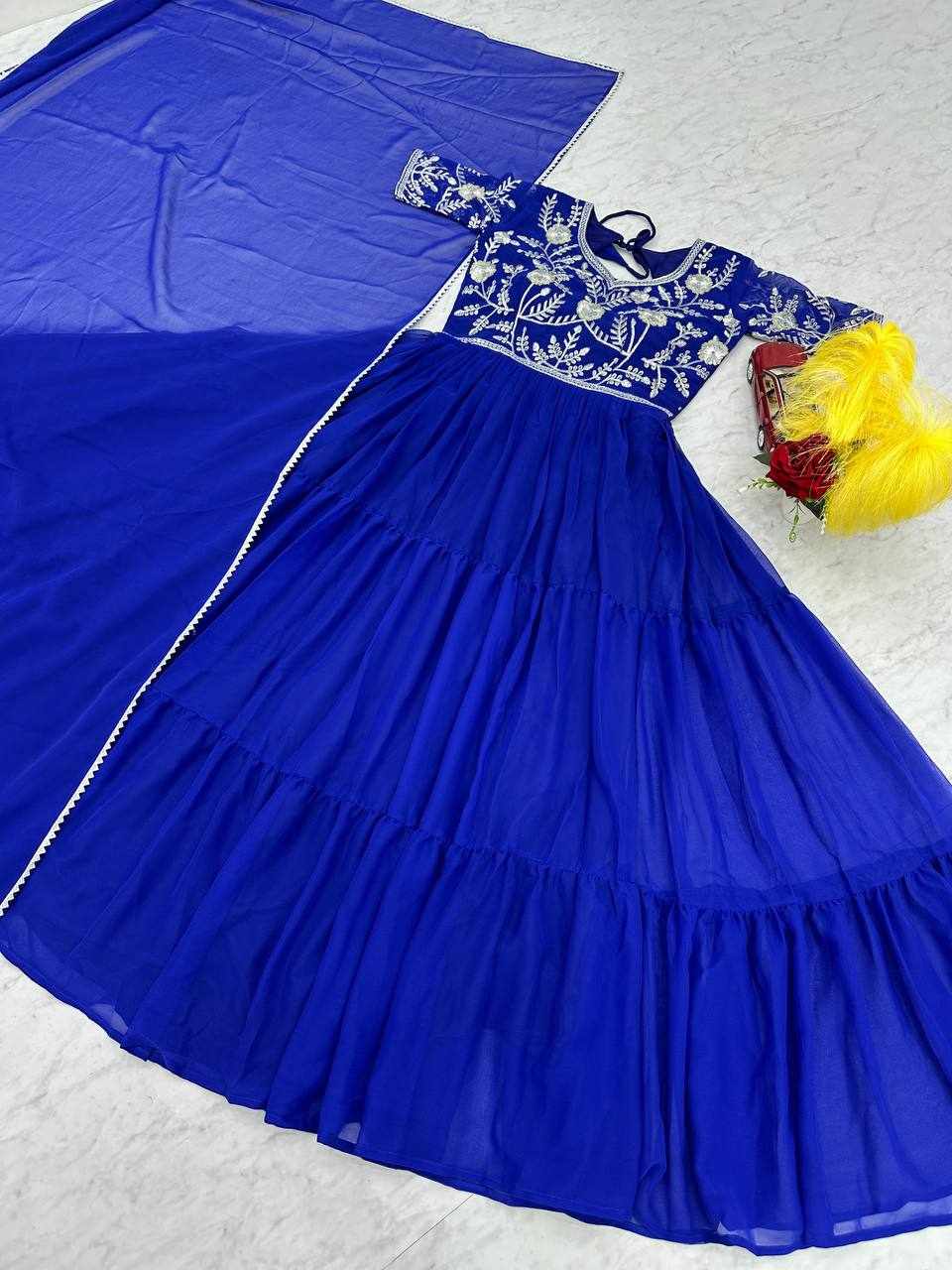 PC 459 Blue Fox Georgette Embroidered Gown