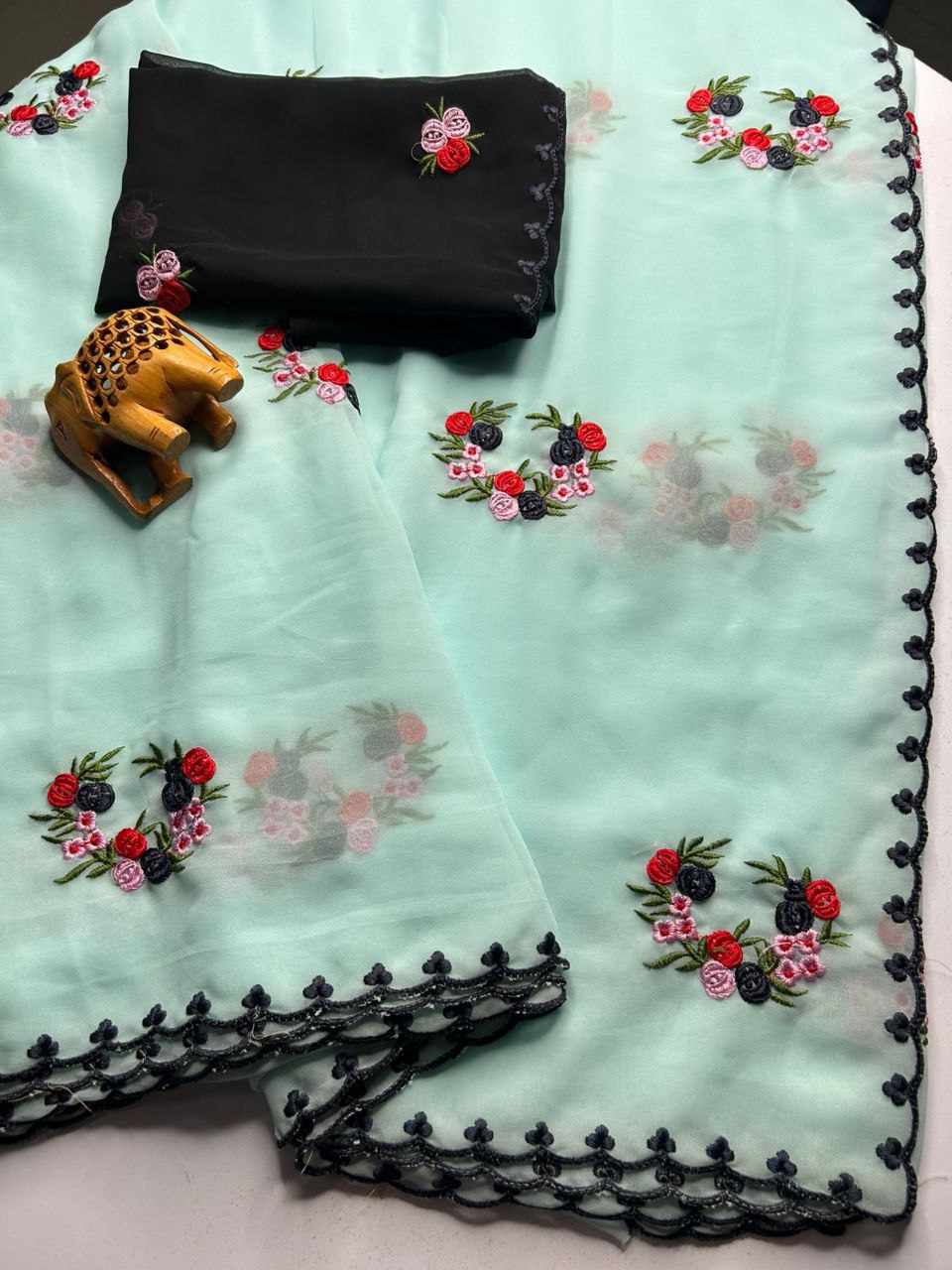 RC Soft georgette with beautiful floral design embroidery work Saree